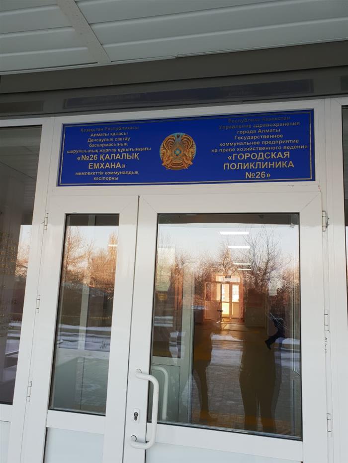 ГККП на ПХВ «ГП №26», адрес: Казахстан, Алматы, мкр Таусамал, ул. Грозы, д. 102