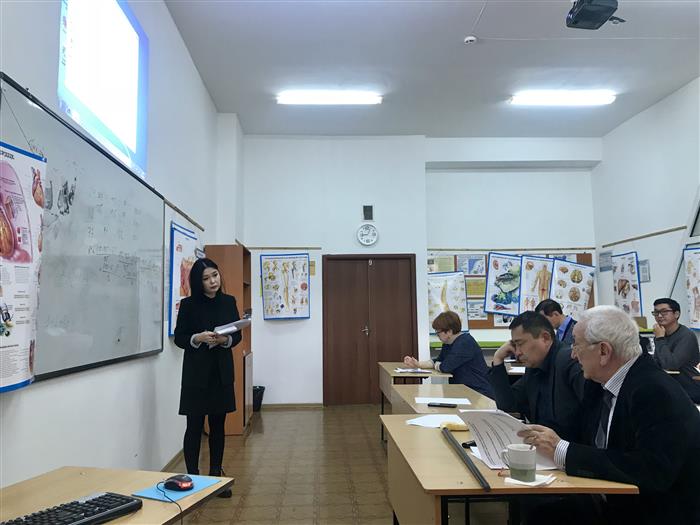 Старшим преподавателем кафедры эпидемиологии, биостатистики и доказательной медицины Факультета медицины и здравоохранения Казахского национального университета имени аль-Фараби Кузиевой Г.Д. было проведено открытое занятие по дисциплине «Методология преподавания общественного здравоохранения» в группе магистрантов научно- педагогического направления 1 курса на тему «Работа в малых группах». На открытом занятии присутствовали директор Высшей школы общественного здравоохранения Факультета медицины и здравоохранения Ошибаева А.Е., преподаватели. Обеспечение качественной подготовки специалистов во многом зависит от эффективности учебного процесса. Главной задачей становится не передача обучающимся определенной суммы знаний, а оказание воздействия на образ мышления. Большое значение в создании таких предпосылок, обеспечивающих подготовку высококвалифицированных специалистов в высшей школе имеет совершенствование учебно- воспитательного процесса на основе применения активных методов обучения. На проведенном открытом занятии каждый магистрант участвовал в работе в малых группах, приобретая знания, умения и навыки, что стало их личным опытом.