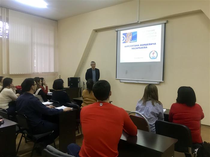 В преддверии Дня Первого Президента Республики Казахстан Нурсултана Назарбаева куратором группы магистрантов научно- педагогического направления Кафедры эпидемиологии, биостатистики и доказательной медицины Факультета медицины и здравоохранения Казахского национального университета имени аль-Фараби Кузиевой Г.Д. был проведен круглый стол на тему «1 декабря - День Первого Президента», где участники обсудили выдающиеся заслуги Н. Назарбаева перед республикой, его вклад в развитие системы здравоохранения. Магистрант Касимов С. выступил с докладом, в котором отразил основные пункты намеченных реформ в системе здравоохранения в соответствии с последним Посланием Президента Республики Казахстан Н.Назарбаева народу Казахстана.