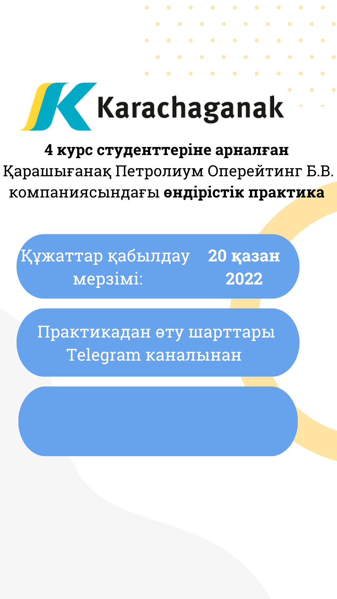 Производственная практика для студентов 4 курса в Karachaganak Petroleum Operating B.V. 04.10.2022 Подробнее >>