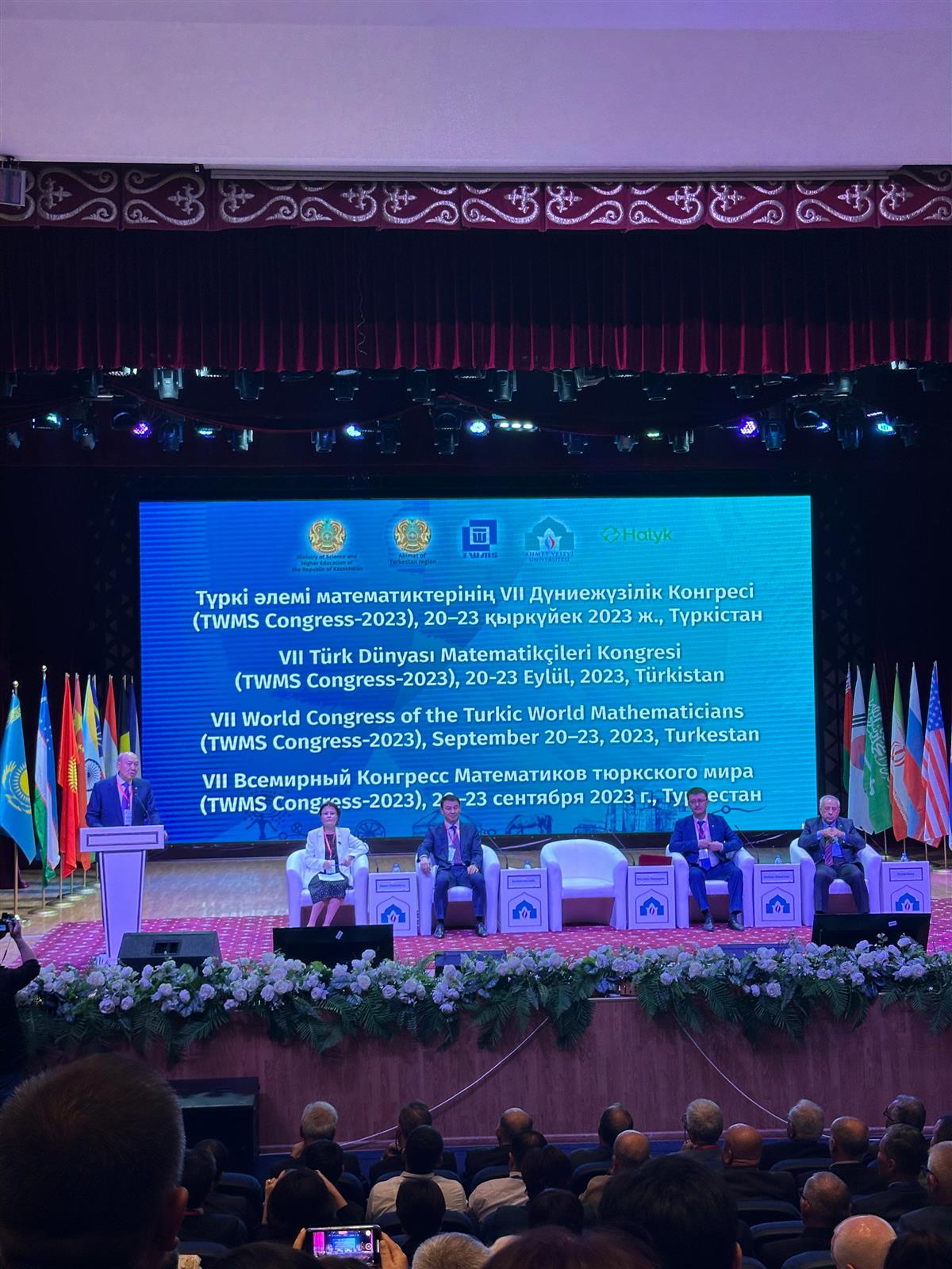 27.09.2023Магистранты 1 курса кафедры механики механико-математического факультета КазНУ им. Аль-Фараби Абдидин Алина, Елдоскызы Куралай, Момыш Назерке и Бодау Бекет выступили с докладами в VII Всемирном Конгрессе Математиков тюркского мира (TWMS Congress-2023), который прошел в городе Туркестан с 20 по 23 сентября 2023 года при поддержке Министерства науки и высшего образования Республики Казахстан, акимата Туркестанской области и Международного казахско-турецкого университета имени Х. А. Ясави (МКТУ).