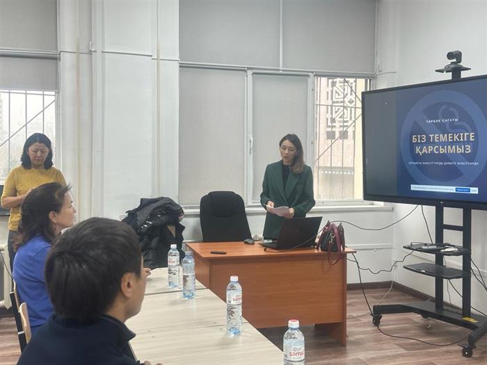 В период педагогической практики докторантами 1- курса кафедры механики А.Абековой, Ж.Айтугановой и Б.Меркибаевой, в рамках Целей устойчивого развития (ЦУР) был проведен воспитательный урок на тему «Мы против табака».