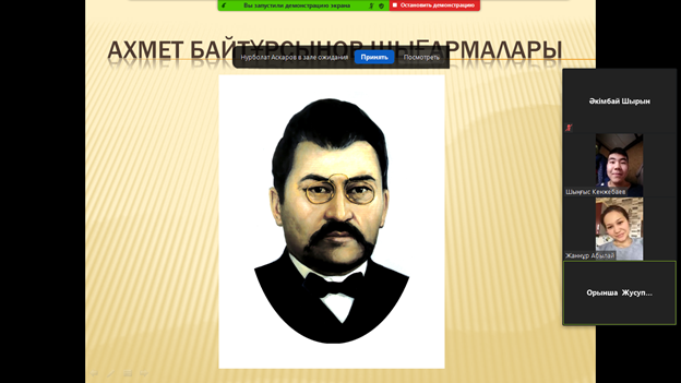 Акимбай Шырын провела открытый урок по произведениям Ахмета Байтурсынова в рамках «100 книг, которые должны быть прочитаны» 14.12.2020 Подробнее >>