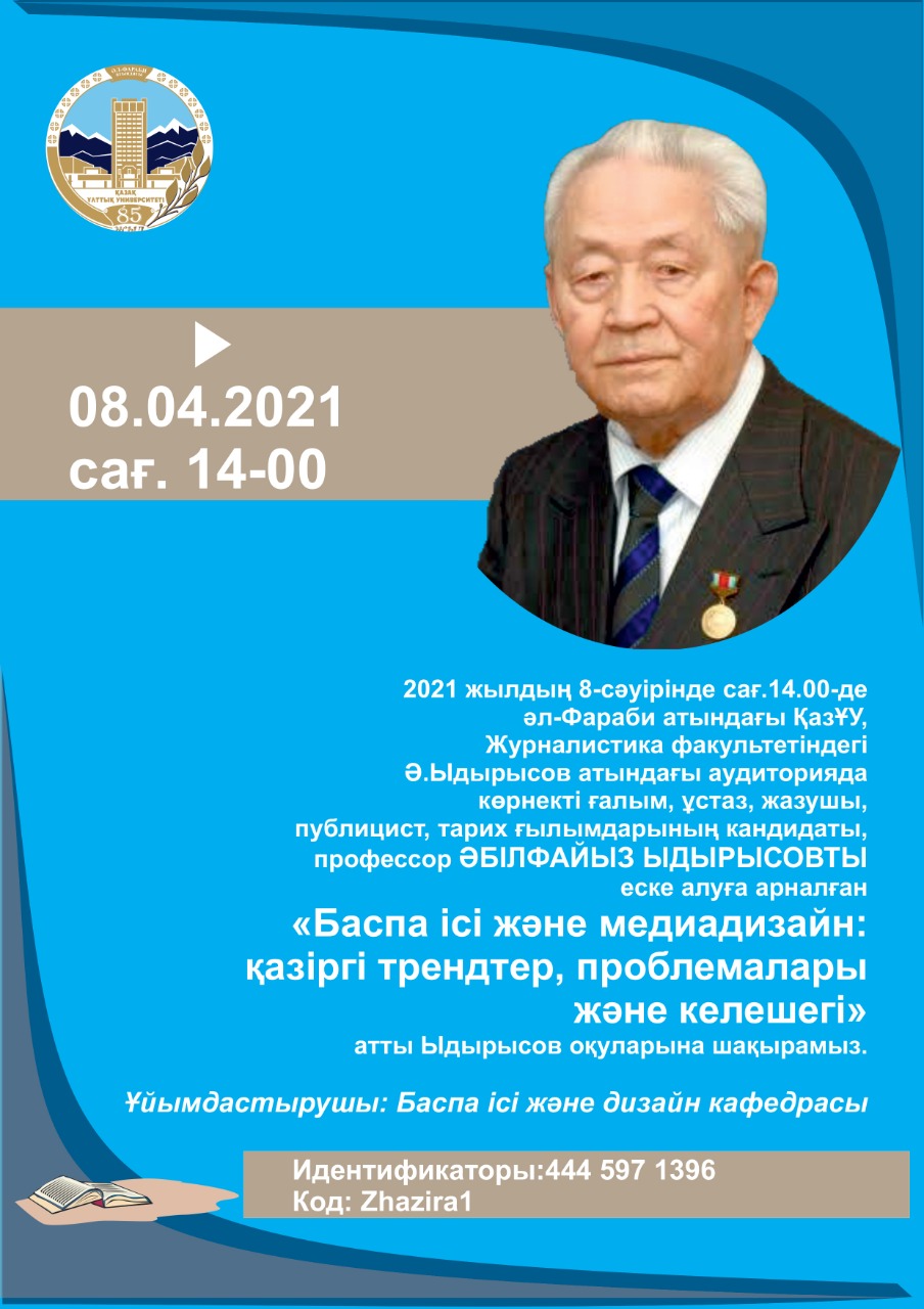06.04.202112 мая 2021 года в 11.00 часов в аудитории им. Е. Шаймерденова факультета Журналистики Казахского Национального университета имени аль-Фараби состоится Международная научно-практическая онлайн-конференция «БУДУЩЕЕ ПЕЧАТИ: ПРОГНОЗЫ И ПРАКТИЧЕСКИЕ РЕШЕНИЯ»
