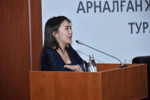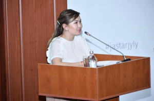 В прениях приняла участие проректор по социальному развитию КазНУ им. аль-Фараби Джаманбалаева Ш.Е. с рядом предложений и пожеланиями выпускникам ВУЗов города Алматы.