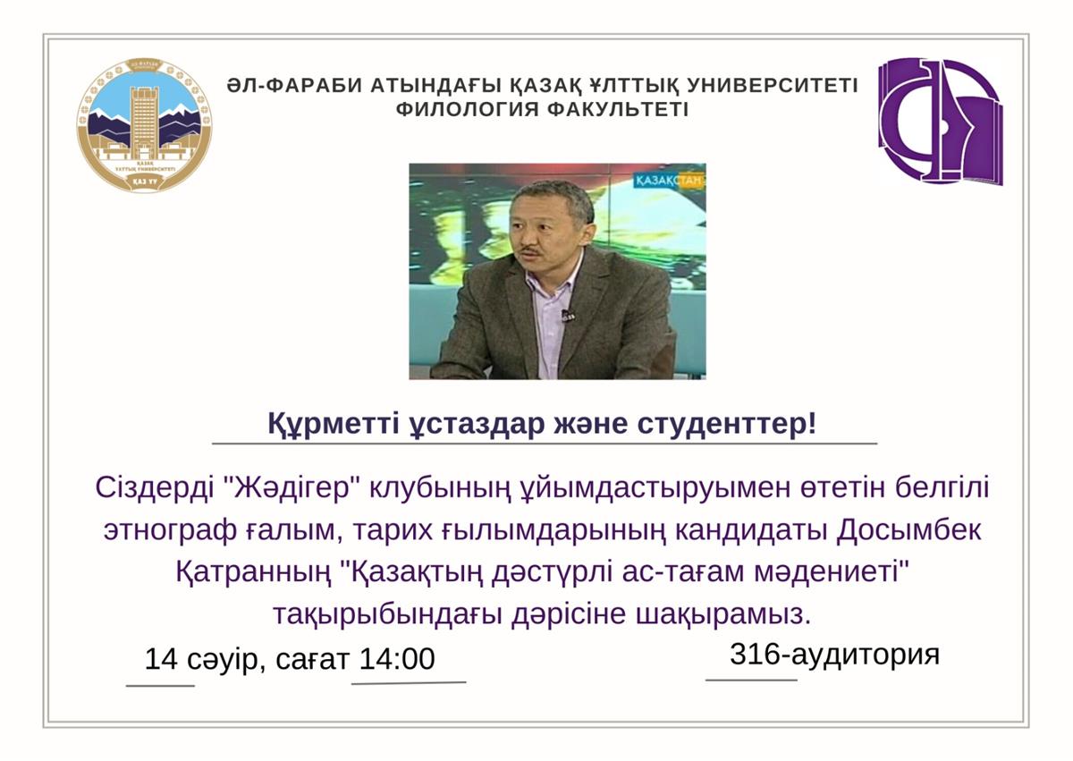 14.04.2023В целях повышения уровня знания культуры и истории, традиций и национальных ценностей, и наряду со знанием государственного языка у студентов других национальностей (не тюркоязычных) в высших учебных заведениях Республики Казахстан 14 апреля 2023 года была проведена олимпиада по казахскому языку под названием: «Говори по-казахски, удивляй мир, Казахстан - независимая страна навсегда!», организованная Казахским национальным университетом имени Аль-Фараби, филологическим факультетом, и кафедрой казахского языкознания имени А. Байтурсынова.