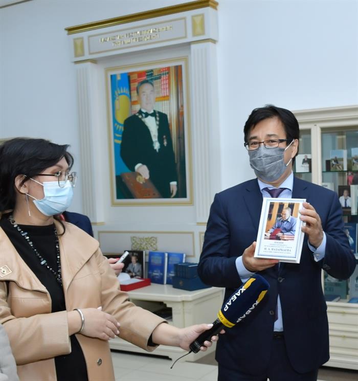 В ходе мероприятия Библиотека Первого Президента РК – Елбасы передала в дар университету 100 уникальных книг, созданных авторским коллективом во главе с Руководителем Канцелярии Елбасы, доктором политических наук, профессором М.Б.Касымбековым.