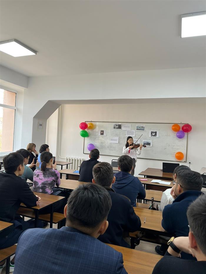 Игра на домбре, на скрипке, пение, чтение стихов оживляли мероприятие и было замечено, что студенты были вовлечены в процесс.