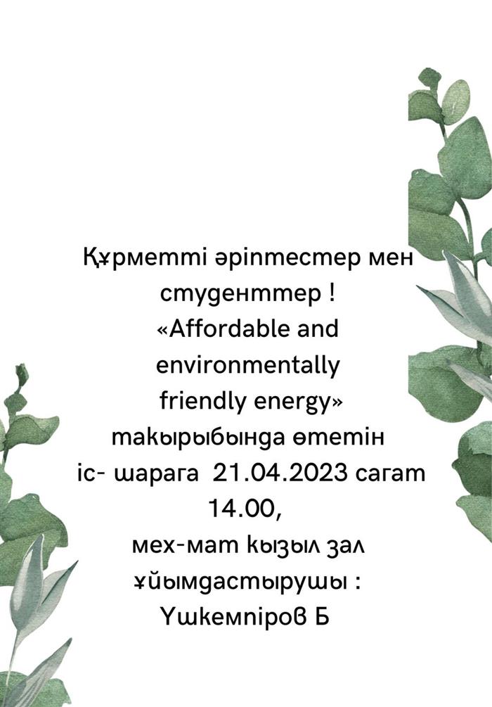 Приглашаю вас на мероприятие «Доступная и экологически чистая энергия» на казахском и английском языках в рамках Цели в области Устойчивого Развития
