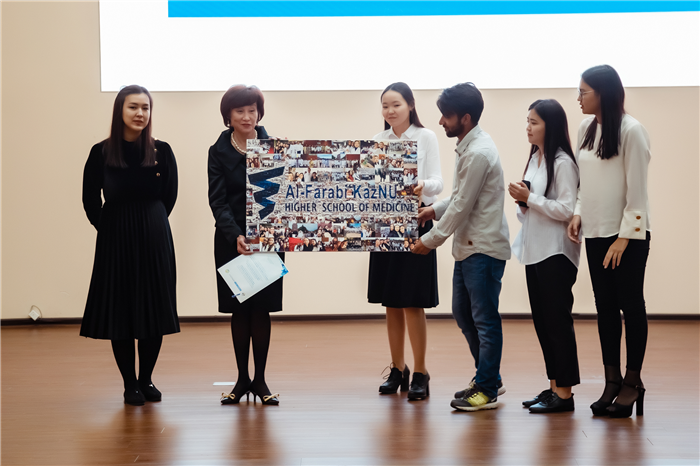 Торжественное открытие церемонии началось с поздравительной речи Первого проректора Казахского национального университета, доктора химических наук, профессора Буркитбаева Мухамбеткали Мырзабаевича. Также первокурсников поздравляли проректор по коммерциализации Мехмет Арслан, директор Высшей школы медицины, доктор медицинских наук Исаева Раушан Биномовна.