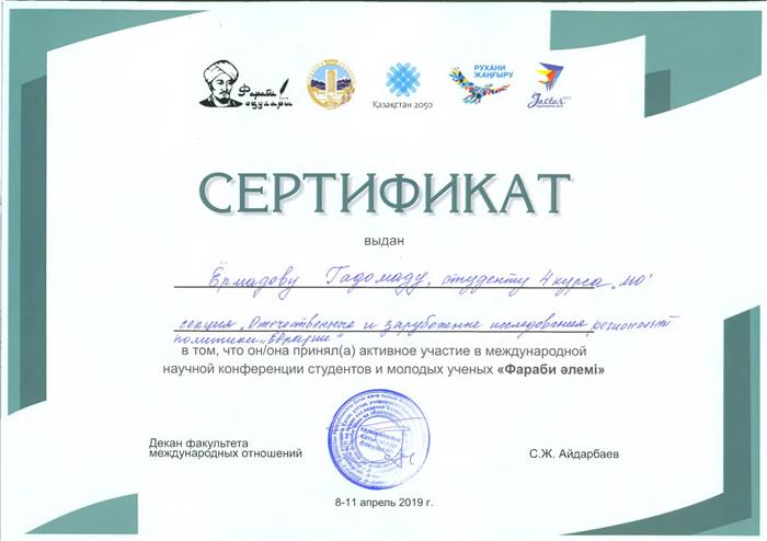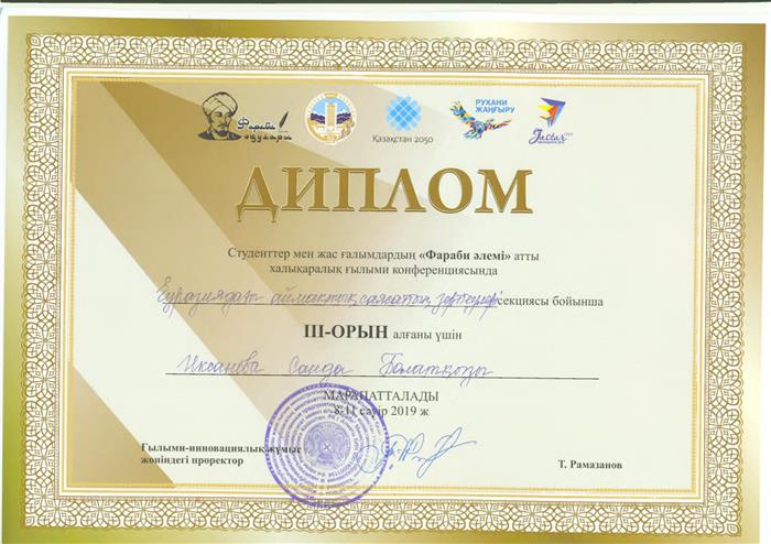 Международная научная конференция студентов и молодых ученых «Фараби әлемі» - 2019