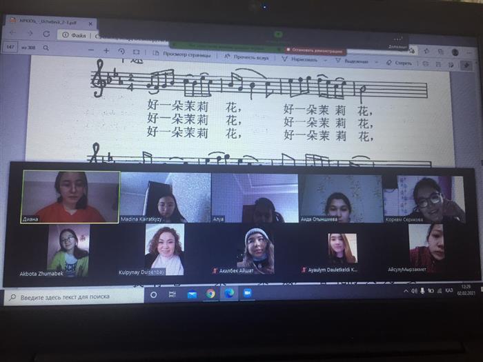 27.01. 2021 г. Казахский национальный университет имени аль-Фараби, факультет востоковедения, кафедра китаеведения, руководитель кружка «Шелковый путь» Дуйсенбай Кульпынай организовал мероприятие по исполнению традиционных китайских песен. В мероприятии приняли участие студенты. Цель этого мероприятия - вызвать интерес у изучающих китайский язык не только к изучению языка, но и к китайской культуре, в том числе к народным песням. Мероприятие проходило на платформе ZOOM. Помимо прослушивания традиционных китайских песен, студенты разучивали новые песни и пели традиционные китайские песни «茉莉花». В клубе «Шелковый путь» часто проводятся мероприятия, которые приближают его к китайской культуре. Студенты поблагодарили организаторов мероприятия. |
