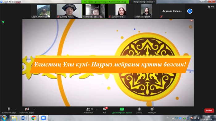 20 марта 2021 года студенты 2 курса кафедры рекреационной географии и туризма организовали праздничный концерт в онлайн формате в честь весеннего праздника Наурыз мейрамы.