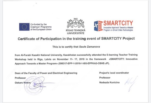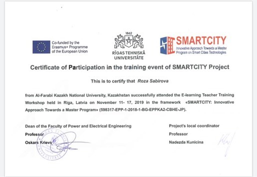 Сертификаты за участие в семинаре в период с 11 ноября по 17 ноября 2019 года в Техническом университете Риги. Рига,Латвия