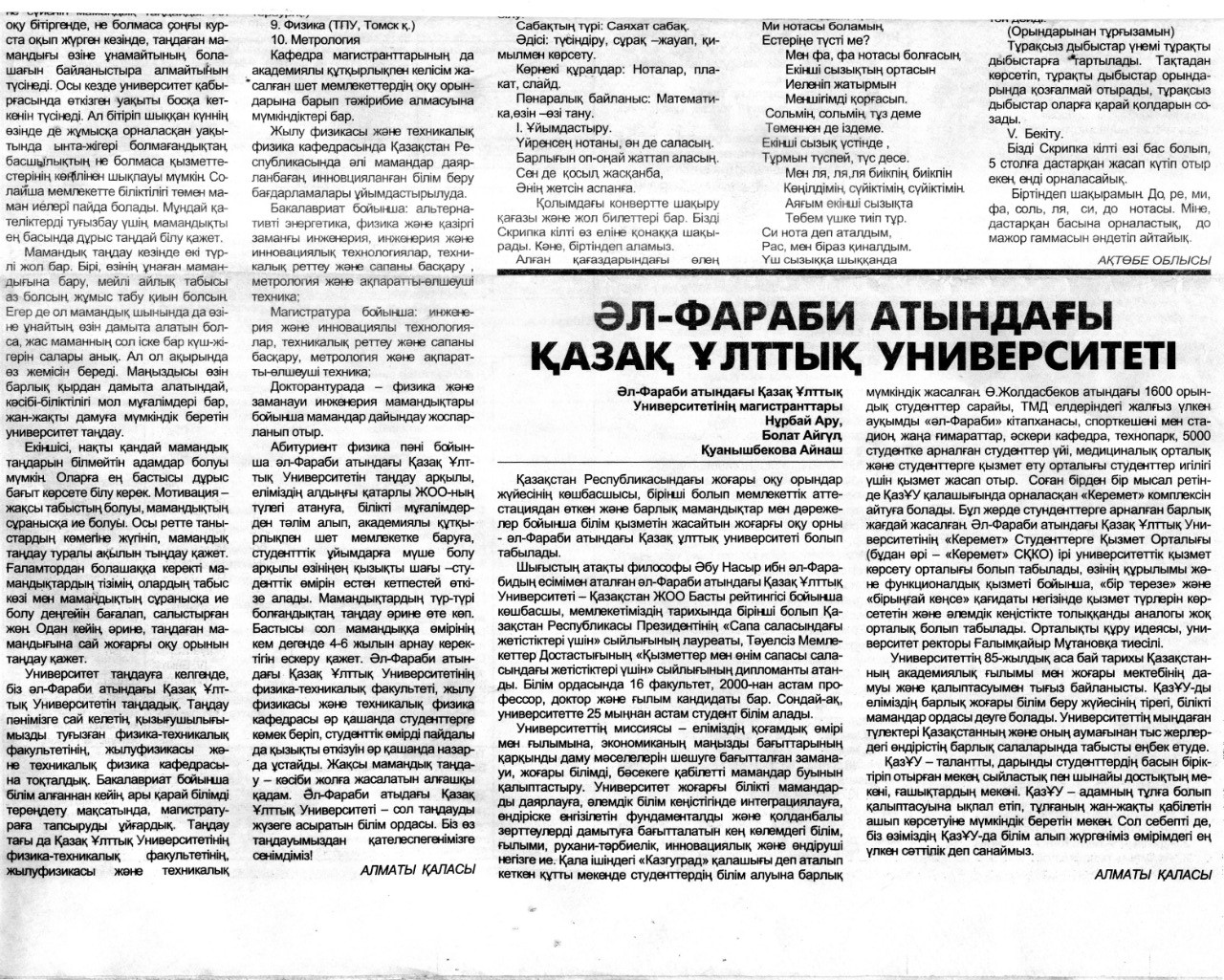 «Әл-Фараби атындағы Қазақ Ұлттық университеті» |