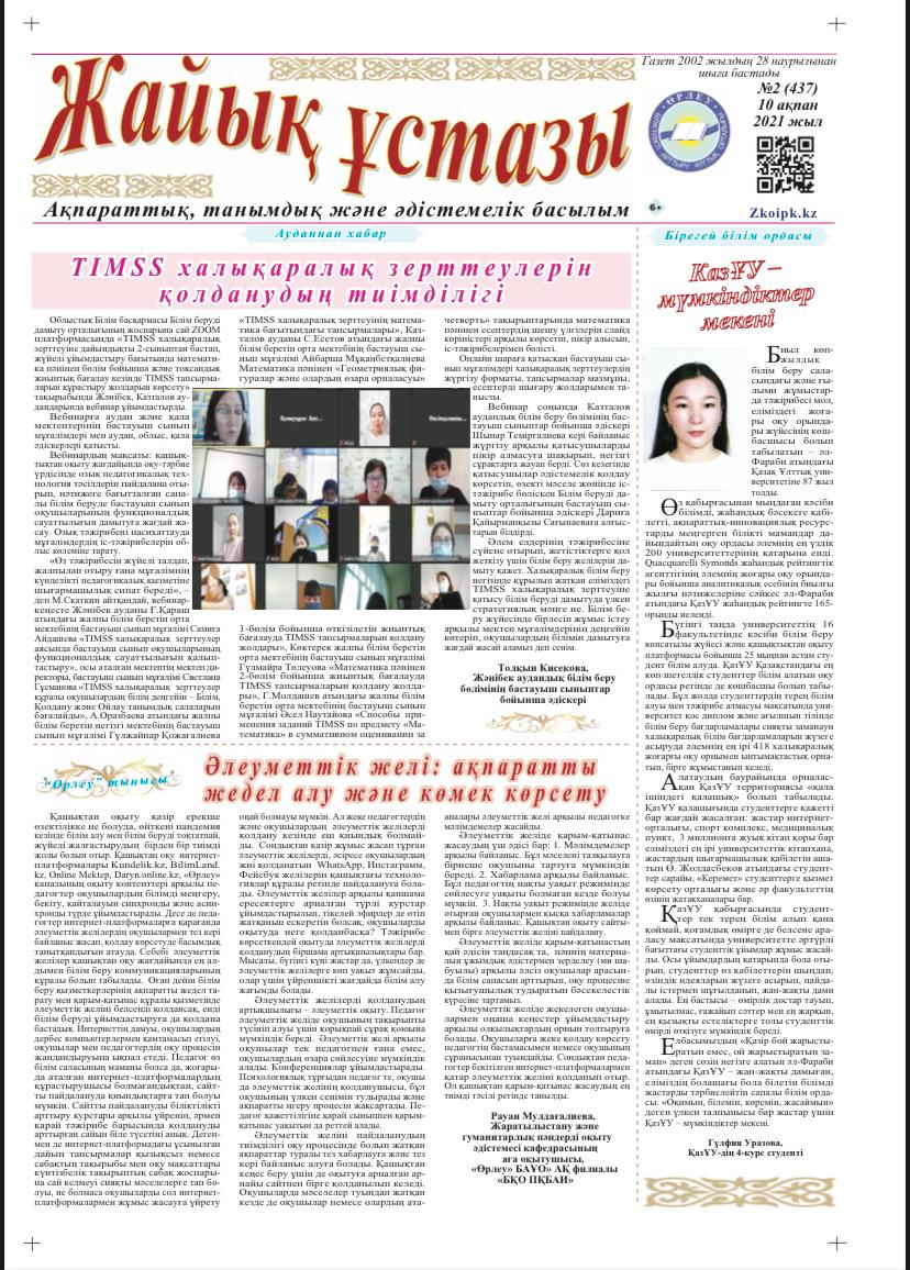 Тектіден текті туар. Қайырманова Г.Қ., к.б.н., доцент, Кірбаева Д.К. к.б.н., ст. преподаватель. Қазақ университеті, №13 (1795). -c. 6. 03.04.2021