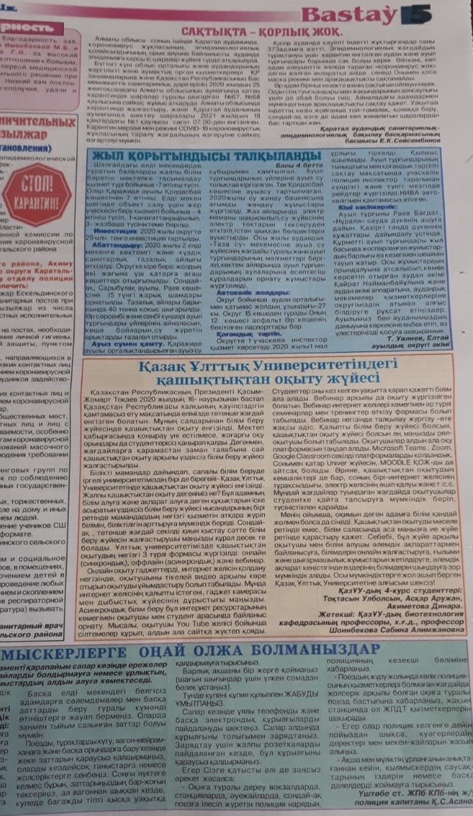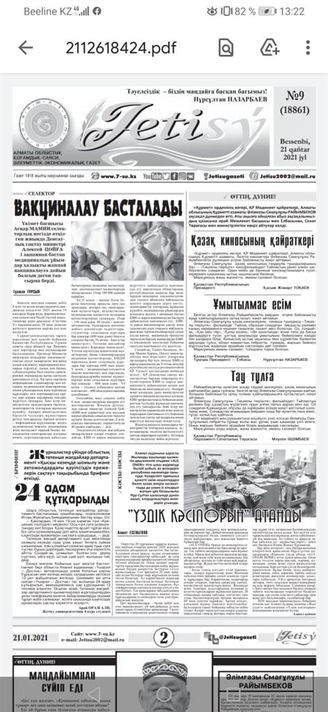 Общественно-политическая еженедельная газета «Бастау» № 3 (1159), г.29 января 2021 г., стр.4.