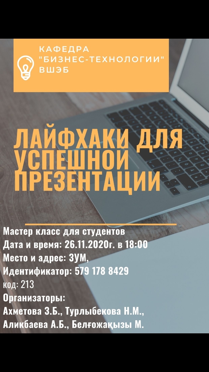 Зав.кафедрой «Бизнес-технологии» к.э.н., проф. Ахметова З.Б.,