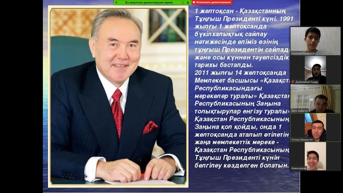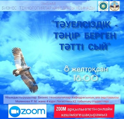 08.12.2020Социально-воспитательное мероприятие на тему: «Тәуелсіздік – тәңір берген тәтті сый»