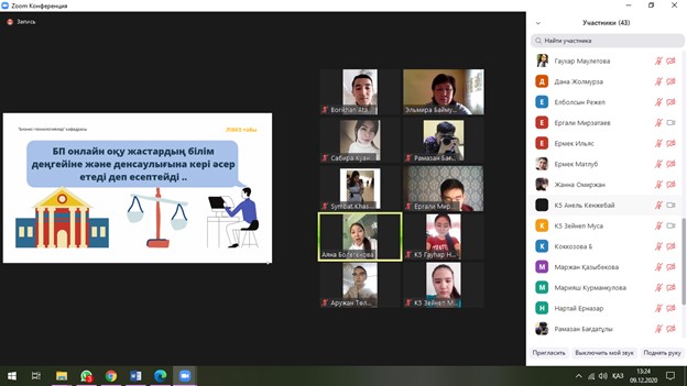 9.12.2020 13.00 Дебат на тему «Онлайн VS Offline» была организована студентами 3 курса группы Лог18k5 специальности «Логистика» кафедры Бизнес-технологий Казахского национального университета имени аль-Фараби, Куратор-эдвайзер Баймуханбетова Э.Е.