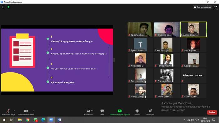 11.12.2020 в 19.00 час. проведено воспитательное мероприятие «Здоровый образ жизни - девиз века!», организованное студентами группы Л18к1 3 курса специальности «Логистика» кафедры «Бизнес-технологий» ВШЭБ Казахского Национального университета имени аль-Фараби. Кураторы-эдвайзеры: Баймуханбетова Э.Е., Аскаров Г.А.