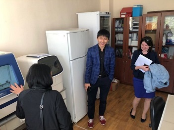 Заместитель директора Института генетики и физиологии Бекманов Б.О. провел экскурсию по лабораториям института, рассказав об основных научных направлениях. В настоящий момент в Институте функционируют следующие лаборатории: молекулярной генетики, генетики и цитогенетики животных, экспериментального мутагенеза, популяционной генетики, генетического мониторинга, генетики и репродукции лесных культур, фармакологических исследований и др., проводятся исследования по генетике дрозофилы, экологической генетике, гистофизиологии и генетике млекопитающих, нейрогенетике, онкогенетике и молекулярной генетике человека, физиологии стрессоустойчивости млекопитающих и растений.