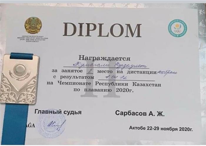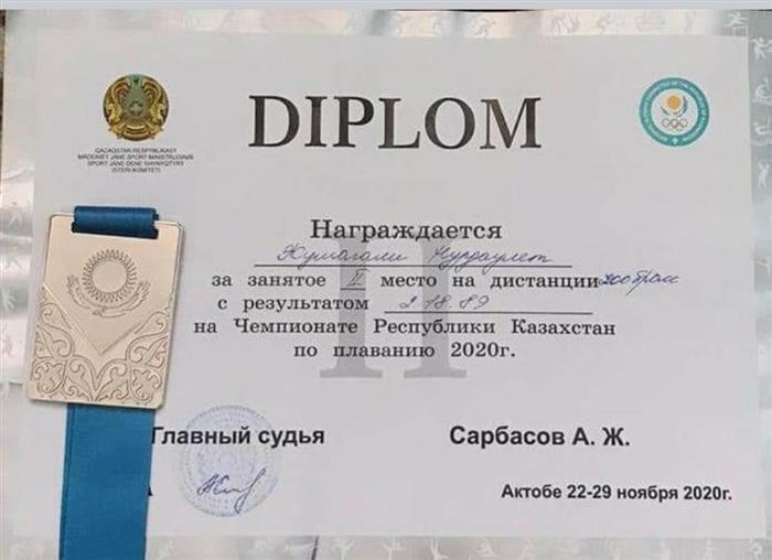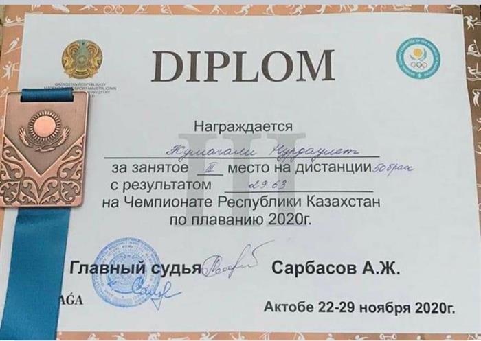 На прошедших соревнованиях Чемпионата РК по плаванию в городе Актобе с 22 по 29 ноября 2020 года, студент 1 курса по специальности «Физическая культура и спорт» Жумагали Нурдаулет завоевал два серебряных и бронзовую медали по следующим позициям: