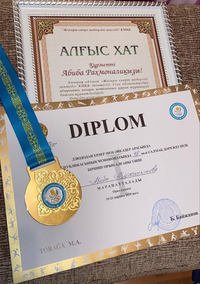 С 19 по 21 ноября 2021 года в г.Уральск (РК) проли соревнования Чемпионата Республики Казахстан по дзюдо среди женщин. Чемпионом в весовой категории 48 кг стала студентка 3 курса факультета Медицины и здравоохранения по специальности «Физическая культура и спорт» Абужакынова Абиба.