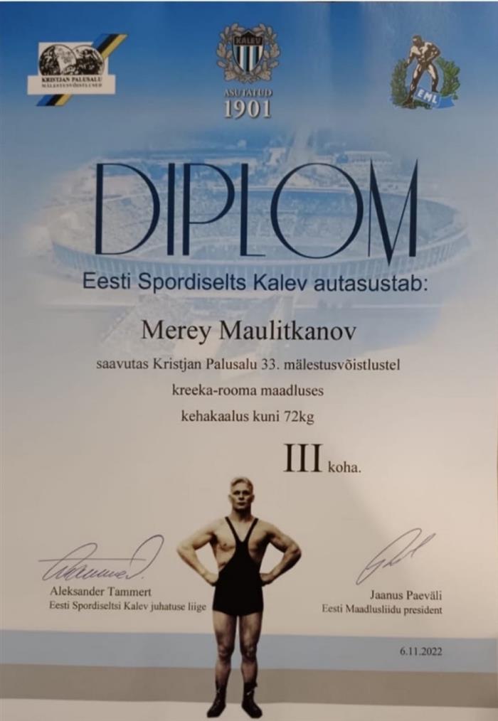 6 ноября 2022 года в г.Таллин (Эстония) прошел международный турнир, посвященный памяти эстонского борца Кристиан Палусалу. На этих соревнованиях студент 3 курса по специальности «Физическая культура и спорт» Маулиьханов Мерей в весовой категории 72 кг стал обладателем бронзового медали
