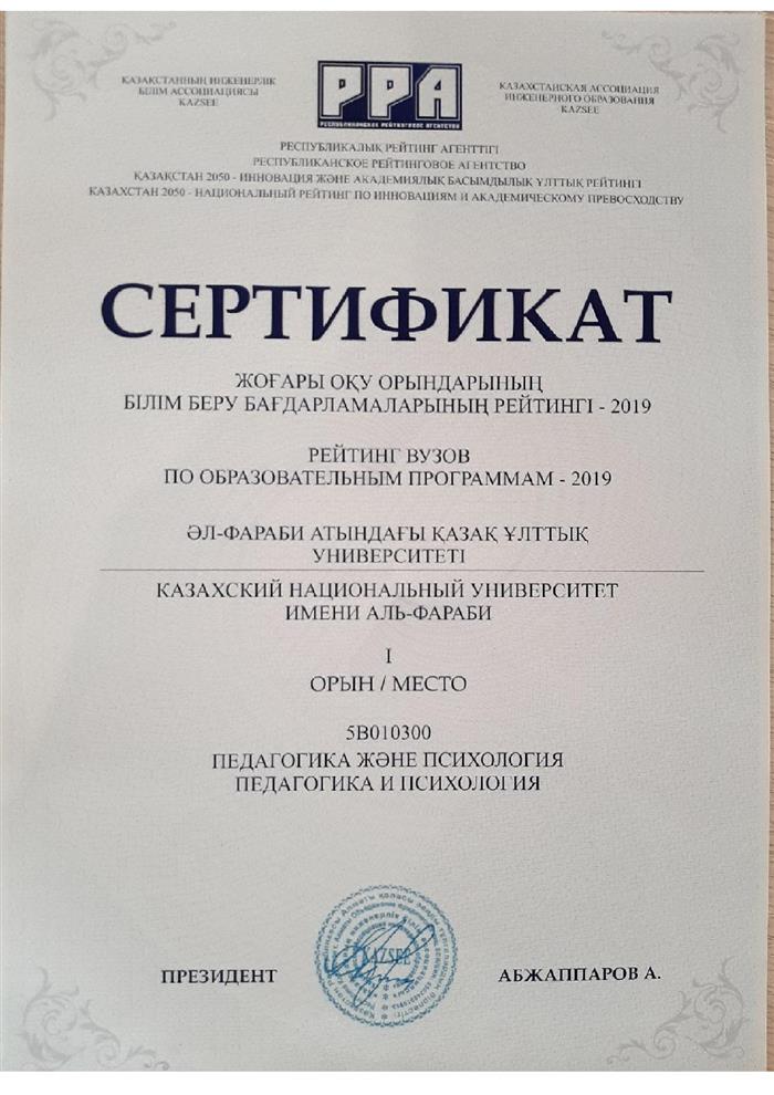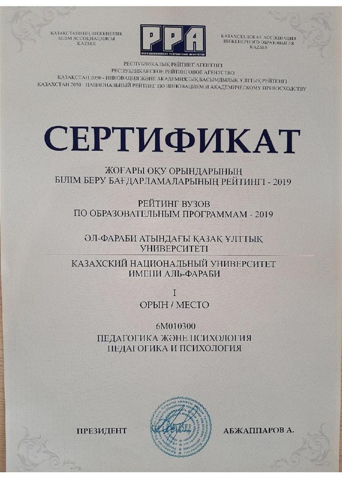 Педагогика и психология(Республиканское рейтинговое агенство 2019)
