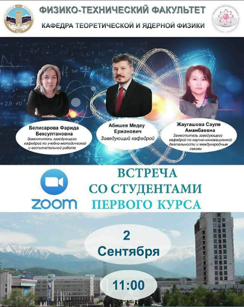 3 докторанта кафедры Теоретической и ядерной физики специальности «6D060500 – Ядерная физика» Насурлла М., Ткаченко А., Федосимова А. успечно защитили степень доктора философии по специальности «6D060500 – Ядерная физика». Поздравляем!