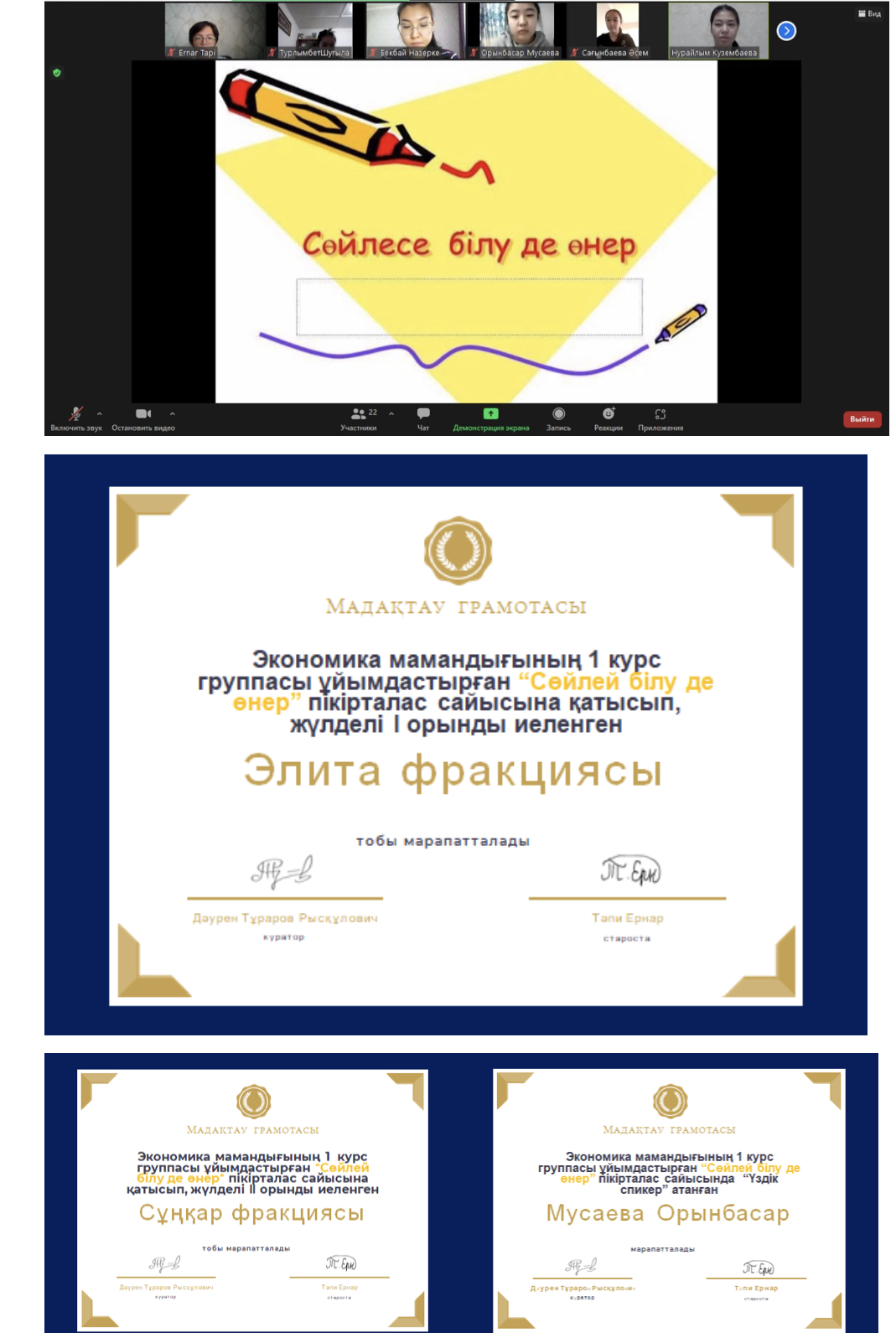03.12.2021Подведены итоги республиканского конкурса эссе, посвященного 30-летию Независимости Республики Казахстан, под названием «Своими словами: достижения и перспективы развития экономики Казахстана за годы независимости», организованный кафедрой «Экономика» Казахского национального университета имени аль-Фараби.
