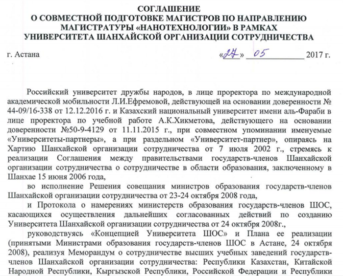 Имеется соглашение по двудипломной образовательной программЕ между Казахским национальным университетом имени аль-Фараби и Российскими университетами (РУДН и МИСиС) по ОП 7M07121-НАНОМАТЕРИАЛЫ И НАНОТЕХНОЛОГИИ В ХИМИИ (НАНОТЕХНОЛОГИИ И МИКРОСИСТЕМНАЯ ТЕХНИКА). Присуждаемая степень: Магистр технических наук по образовательной программе 7М07121-Наноматериалы и нанотехнологии.