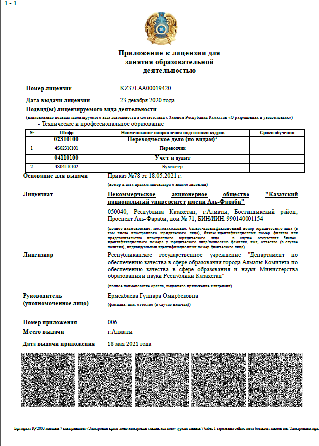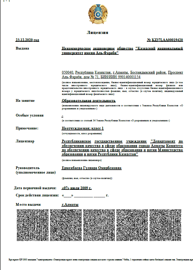 КАЗАХСКИЙ НАЦИОНАЛЬНЫЙ УНИВЕРСИТЕТ