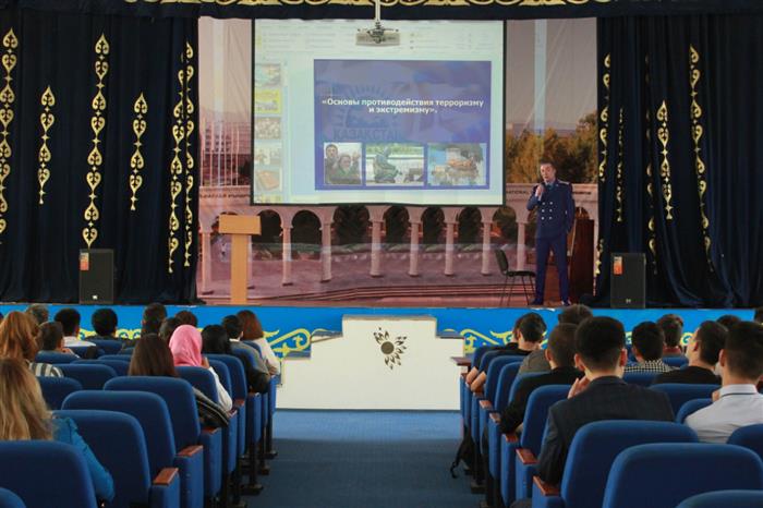 21.11.2018 г. В факультете довузовского образования КазНУ им. Аль-Фараби прошла лекция на тему: “Современные тенденции борьбы с коррупцией” для студентов. На лекции майор Суханбердин Р.Р. рассказал студентам какие органы помимо прокуратуры имеют полномочия по борьбе с коррупцией, также разъяснил систему взаимодействия прокуратуры с другими органами государства. Также майор Суханбердин Р.Р., призывал студентов, то есть молодёжь бороться с коррупцией, не допускать в нашем государстве процветать и овладевать коррупции, разъяснил как действовать в случае обнаружения или подозрения в коррупции.