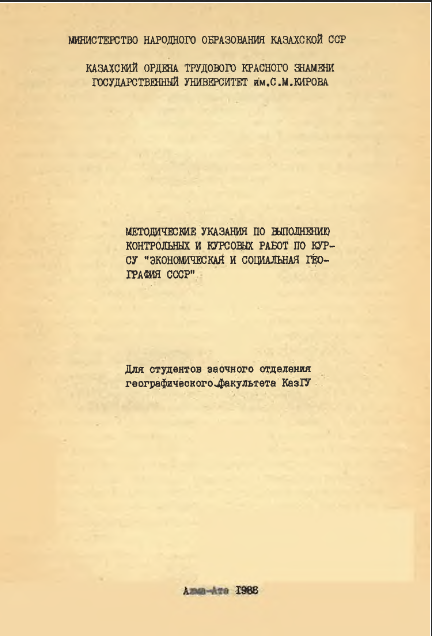 МЕТОДИЧЕСКИЕ УКАЗАНИЯ ПО ВЫПОЛНЕНИЮ КОНТРОЛЬНЫХ И КУРСОВЫХ РАБОТ ПО КУРСУ ЭКОНОМИЧЕСКАЯ И СОЦИАЛЬНАЯ география СССР (рус.)