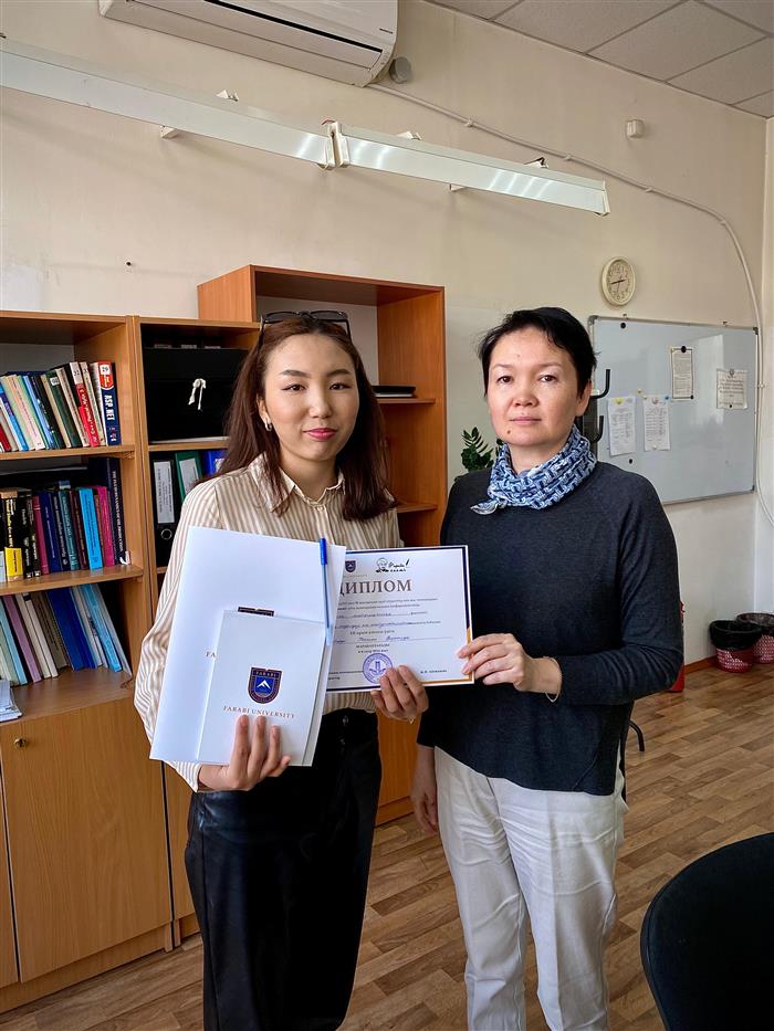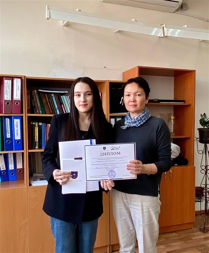 Нұрғазы Томирис Нұрматқызы (кафедра математического и компьютерного моделирования, бакалавр, 4 к., научный руководитель PhD, ст. преподаватель Кудайбергенов Аскат Канатович ) – Диплом II степени