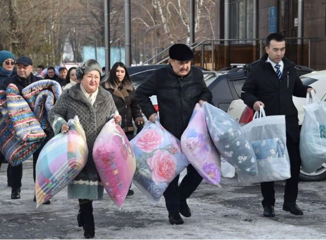 Одним из первых на просьбу о помощи откликнулся деканат юридического факультета Казахского национального университета имени аль-Фараби, а также профессорско-преподавательский состав кафедры теории и истории государства и права, конституционного и административного права. В качестве гуманитарной помощи были закуплены теплые одеяла, матрасы, подушки.