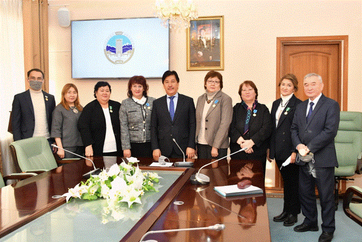 В торжественной обстановке, в зале приемов КазНУ имени аль-Фараби, ректор Галимкаир Мутанович Мутанов от имени Президента Республики Казахстан Касым-Жомарта Токаева вручил высокие государственные награды «Ерен еңбегі үшін» и медаль «Шапағат» преподавателям и сотрудникам университета.