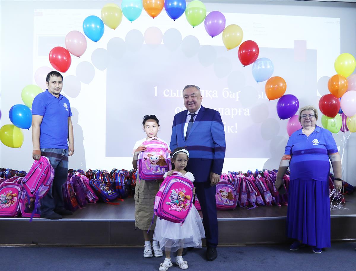Профсоюз «Парасат» работников КазНУ им. аль-Фараби при поддержке администрации вуза выдал малышам, идущим в первый класс, портфели и школьные принадлежности.