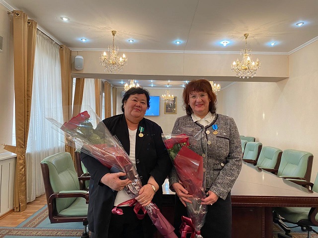 Высокой награды «Ерен еңбегі үшін» («За трудовое отличие») были удостоены профессора: Куралай Иртысовна Байзакова, Мара Шаукатовна Губайдуллина, Гульнара Орленбаевна Насимова. Медалью «Шапағат» («Милосердие») наградили профессоров: Фатиму Тураровну Кукееву, Клару Нальдибековну Макашеву и специалиста по IT технологиям Ерлана Кустаубаева.