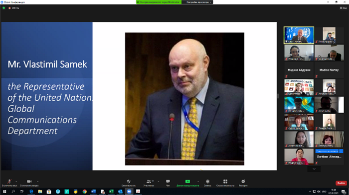 В своем выступлении представитель департамента глобальных коммуникаций в ООН г-н Властимил Самек особо подчеркнул тот факт, что КазНУ как единственный Хаб программы ООН в Центральной Азии институционализировал международную молодежную коммуникационную платформу Модель ООН Новый Шелковый Путь, тем самым оказав всестороннюю поддержку инициативам молодежи.