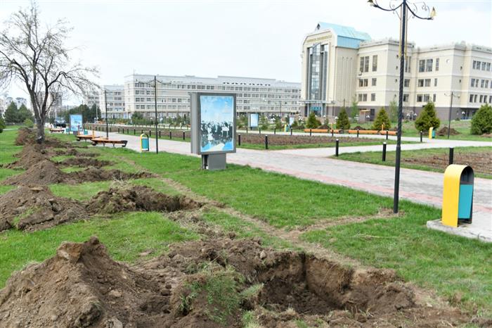 Работа по благоустройству студенческого городка КазНУ ведется с марта. Накануне праздника Наурыз состоялось открытие «Аллеи деревьев». Коллективом вуза было высажено более 160 крымских и алтайских сосен.