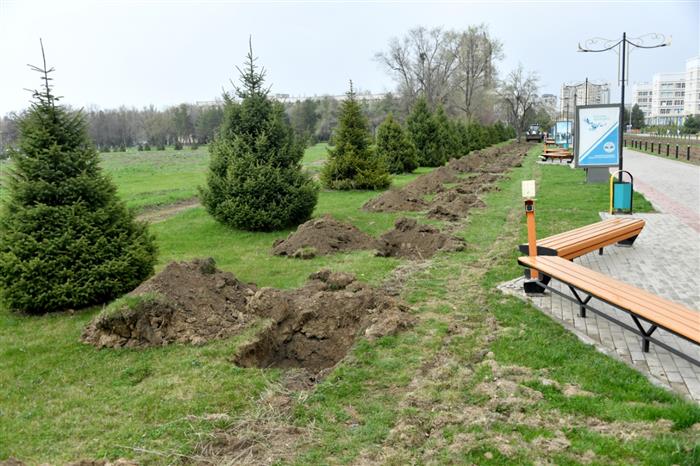 Во время экосубботника работа по озеленению кампуса территории продолжилась – на «Аллее деревьев» появилось еще 120 саженцев хвойных пород.