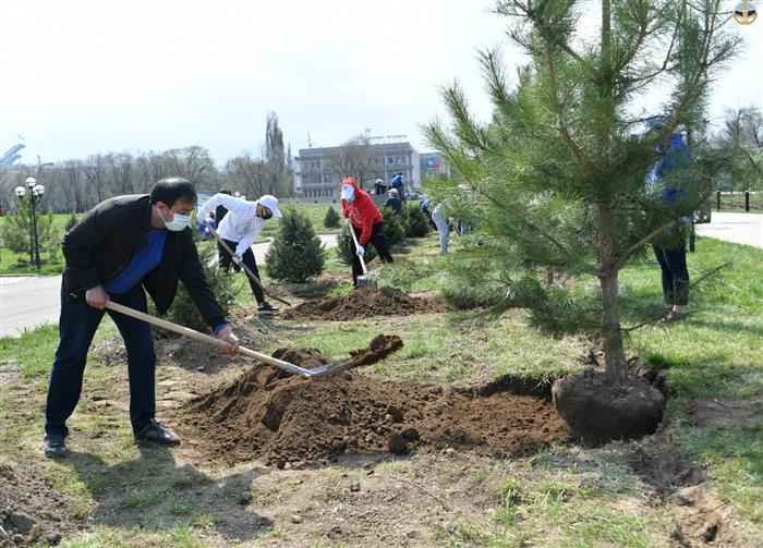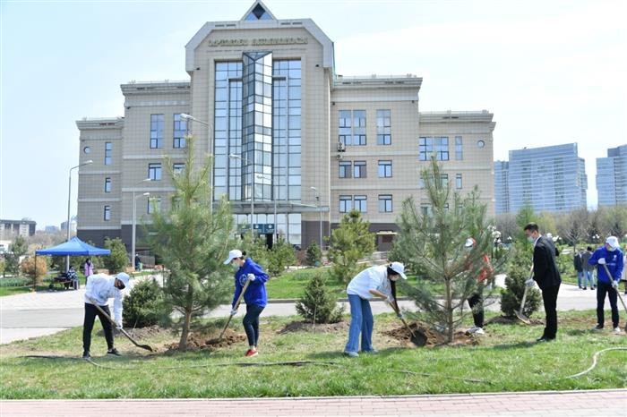 В Казахском национальном университете имени аль-Фараби прошел экологический субботник, в ходе которого были высажены 120 саженцев крымских сосен на «Аллее деревьев» с участием руководителя вуза Жансеита Туймебаева.