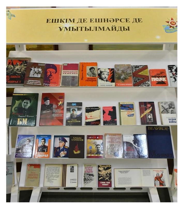 В преддверии празднования Дня защитников Отечества и Дня Победы - 9 мая в библиотеке Аль-Фараби в рамках 30-летия Независимости Казахстана организована книжная выставка «Великая победа – девиз для поколений».