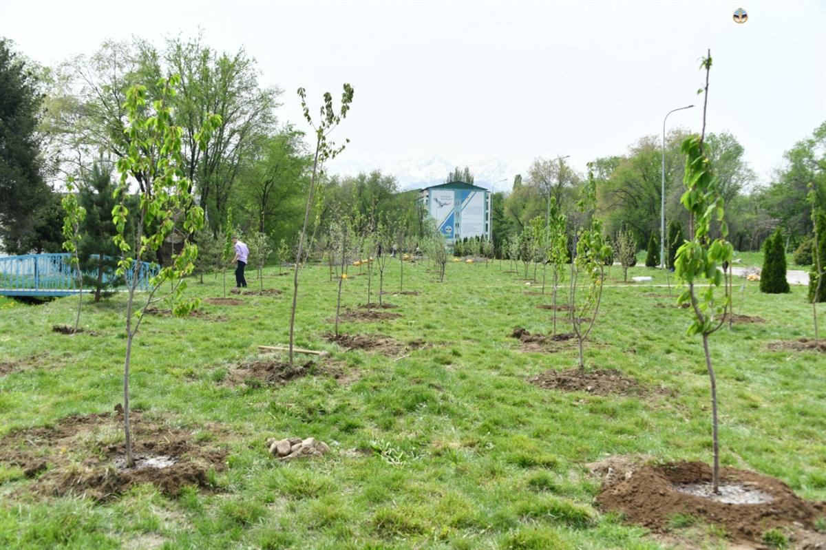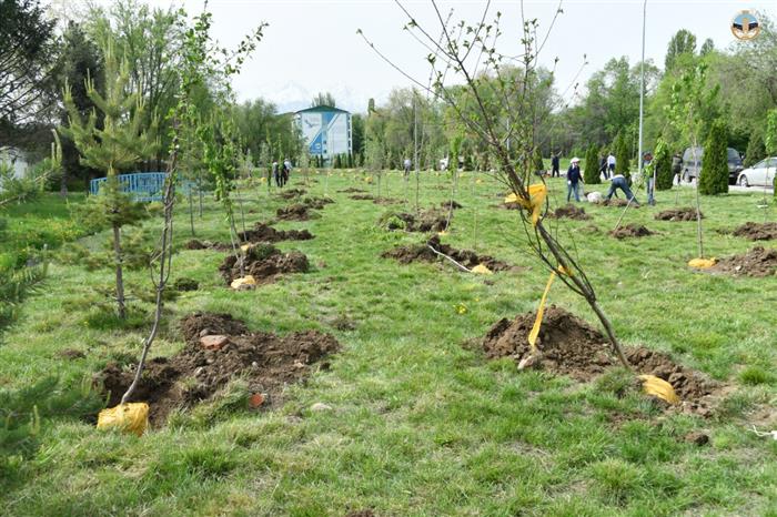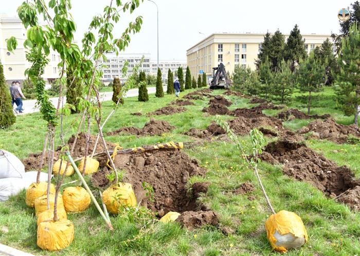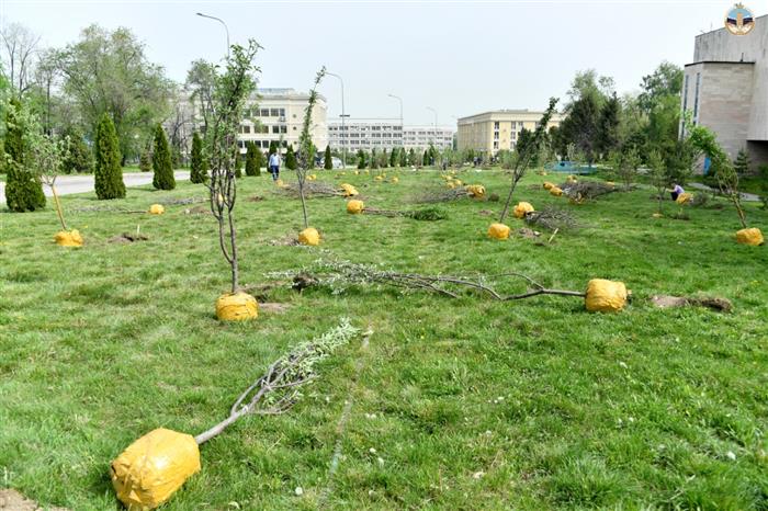 Следует отметить, что с начало весны в ходе работ по благоустройству студенческого городка было высажено около 300 саженцев крымских и алтайских сосен. В День работников науки на территории кампуса университета также высадили 100 саженцев яблони сорта «Сиверс», которая была отмечена в статье Елбасы Нурсултан Назарбаев как одна из семи граней Великой степи. Участок плодовых деревьев назвали «Садом ученых».