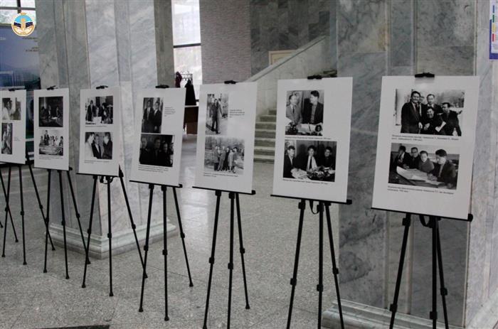 Собравшиеся ознакомились с книжной и фотовыставкой, посвященной жизни и творчеству корифея казахской журналистики Таумана Амандосова. В экспозиции представлены книги, написанные ученым в разные годы, рисунки и фотографии рассказывающие о жизненном пути, материалы и исследования.