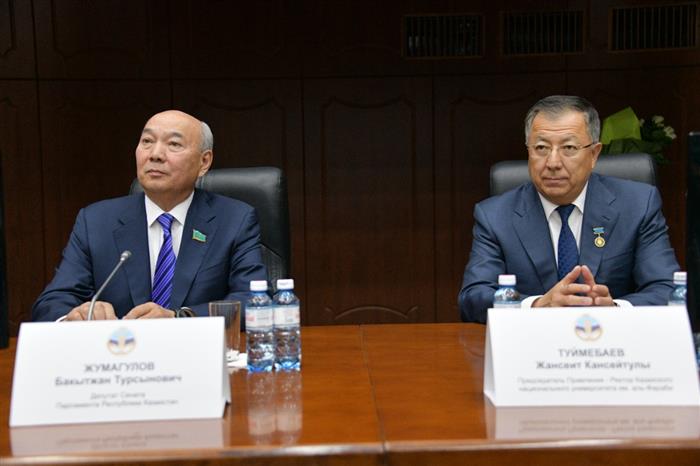 В Казахском национальном университете имени Аль-Фараби состоялась встреча депутата Сената Парламента РК, академика Бакытжана Жумагулова с профессорско-преподавательским составом, докторантами и магистрантами.