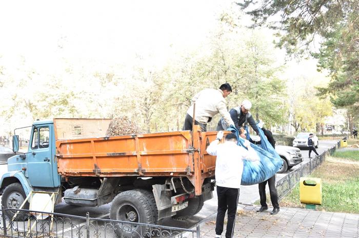 Председатель Правления – Ректор КазНУ имени Аль-Фараби Жансеит Туймебаев лично проинспектировал ход субботника и пожелал молодежи плодотворной работы.